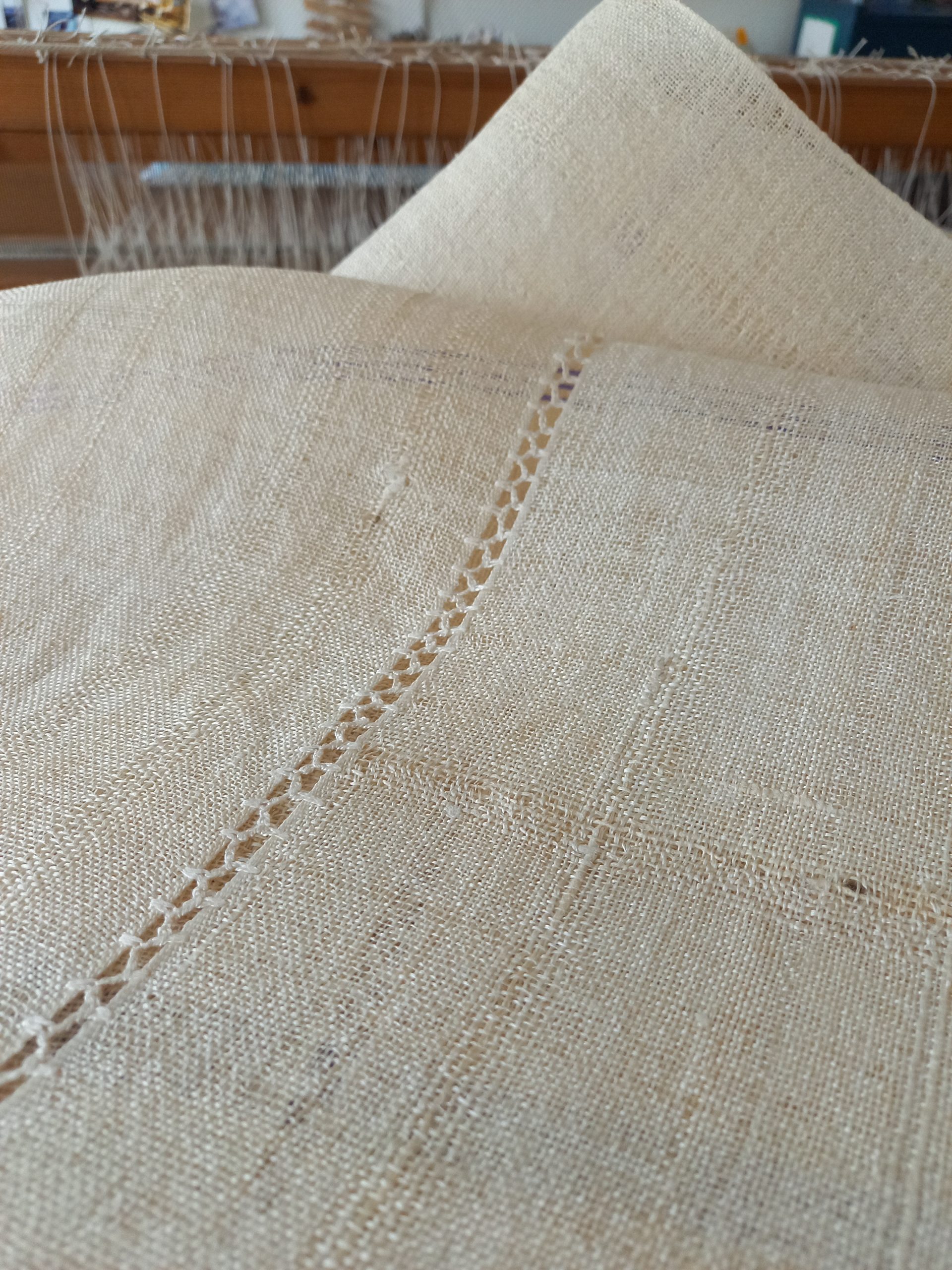 Til markederne har jeg vævet nye up-cycling måtter i hør og færdiggjort mit langsomme projekt med det sidste af den håndspundne silke jeg hjembragte fra Syrien tilbage i 2010 – den er nu omsat til en lille serie af unikke tørklæder